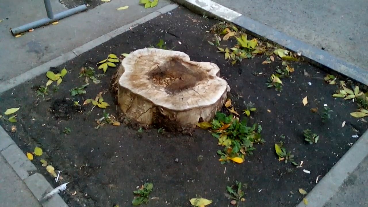Очередной пень на месте большого, здорового и красивого, цветущего дерева