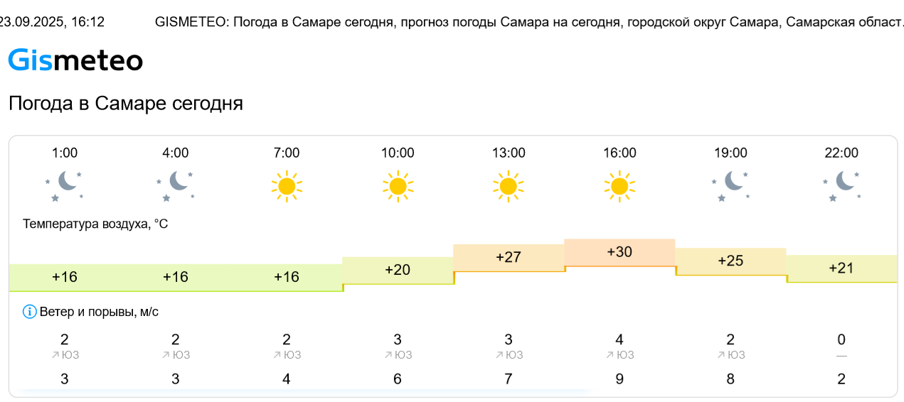 Вечер того же дня, показаниями реальных термометров наглядно иллюстрирующий запредельный алармизм прогнозов ГИС